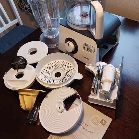 • Useita lisäosia (viipalointi, raastaminen, taikina, blenderi)