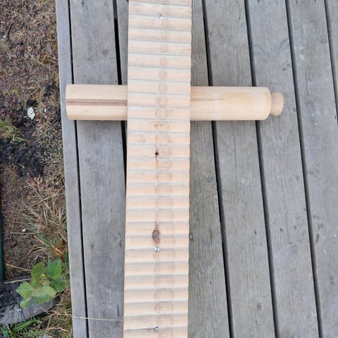 Käsikäyttöinen, siisti ja hyväkuntoinen vanha puumankeli. Mankelilla ikää noin 60 vuotta. Rullan pituus 50 cm, laudan pituus 102 cm ja leveys 13 cm. Hinta 20€.