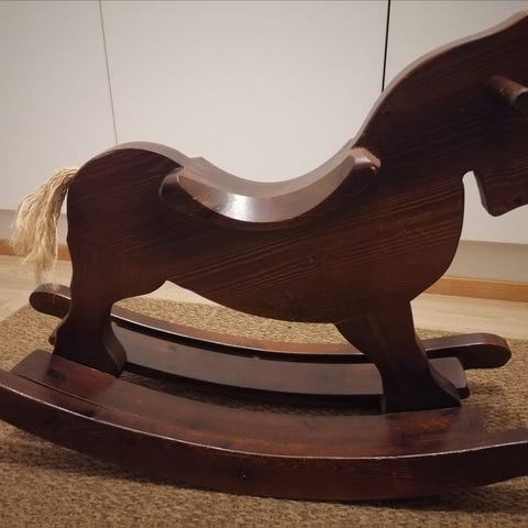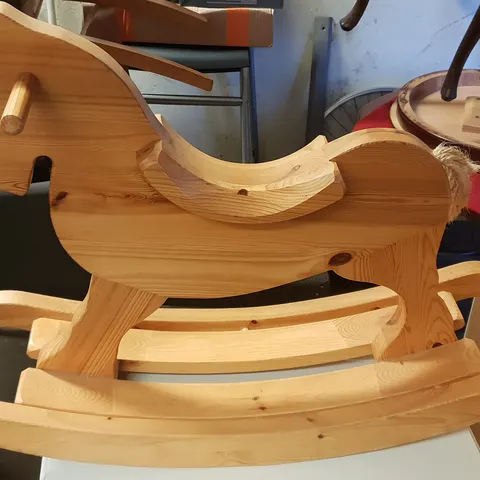Punainen keinuva poro. Istuinosassa muutama pintanaarmu, muuten pesty ja hyvässä kunnossa.