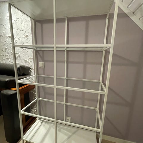 Lasihyllyillä varustettu IKEA vittsjö vitriini. Siisti.