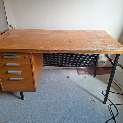 Myydään vanha pöytä. Tummaa puuta. Toiminut työpöytänä. Käytön jälkiä, mutta toimiva ja ehjä. Nouto Klaukkala.
