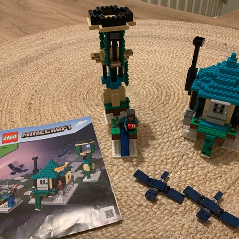 Lego Minecraft 21173 Taivastorni.Hyvässä kunnossa,ei juurikaan ole edes leikitty.Kaikki osat näyttäisi olevan paitsi talosta vihreä roikkuva juttu.Osa näkyy viimeisessä kuvassa.