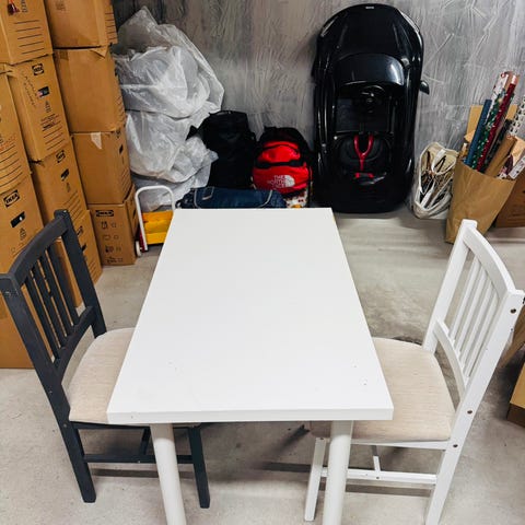 Ok kuntoinen pöytä. 3kpl ok kuntoisia tuoleja ja yksi tuoli, josta päälliset kuoriutuu irti. Mieluusti kaikki kerralla.