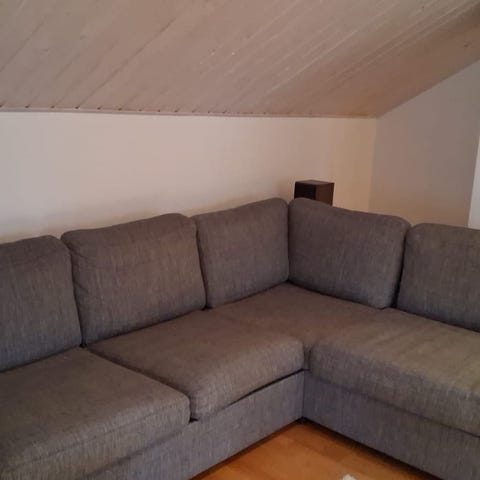 Hyvä kuntoinen Jyskin Karise kulmasohva. Jotain pientä tarhaa saattaa olla, mutta siistissä kunnossa on ja täysin ehjä.