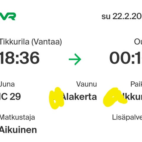 Junaliput opiskelijalle Seinäjoelta Ouluun ja takaisin.