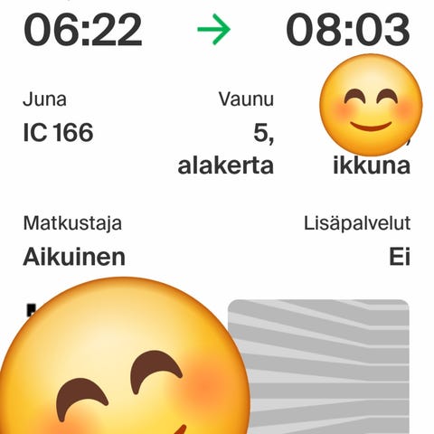 Junalippu Pasila - Tampere, ke 7.1.2026, klo 16.46-18.21