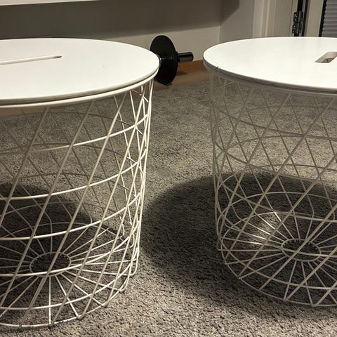 Myydään koripöytä / sohvapöytä. Halkaisija 44cm. Pinnassa pientä käytönjälkeä (ks kuva). Irroitettava kansi. Nouto Myyrmäestä.