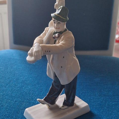 Klovnia esittävä kaunis taulu. Koko 31 x 24 kehysten kanssa. Alunperin hankittu kotimaisesta taidegalleriasta. Taulussa on signeeraus (kuva), jota en onnistunut tunnistamaan: P Mehto tai Mehr? Kaunis ja hyväkuntoinen levylle maalattu/kaiverrettu tms. tekniikalla lienee oma nimikin?