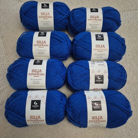 Järbo Alpe tummansininen 100 % villa 2 x 50 g, Dale Falk superwash norjalainen villa, vaalean sininen 2 x 50 g, Gjestal norjalainen konepestävä Janne pinkki villalanka 2 x 50 g + vajaa 45 g, ei eläimiä tai tupakoitu