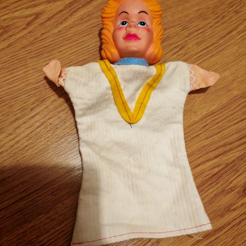 Käsinuket ja "teatteriverho" oviaukkoon käsinukeille