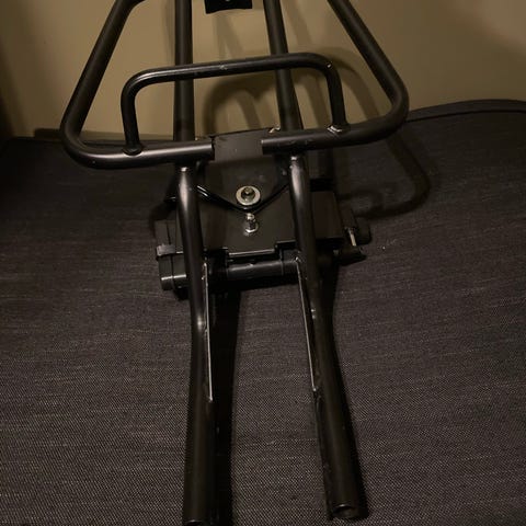 Mönkijän takateline, valmistettu metallista. Soveltuu mönkijän tavaratelineeksi. Väri musta. Käytetty kunto, näkyvissä käytön jälkiä.
