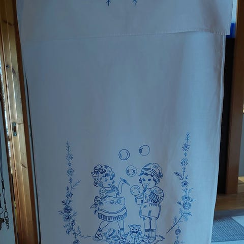 Kirjottu pyyheliinapeite Lapset ja kissa