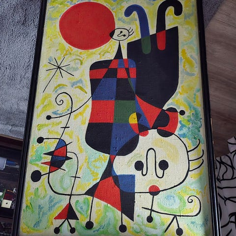 Taiteilija Joan Miró (1893-1983) oli espanjalainen taidemaalari. Hänen suuntauksensa oli surrealismi. Abstrakti ekspressionismi taidesuuntaus sai paljon vaikutteita häneltä. Miró valmisti myös veistos ja patsas töitä sekä tarjoilu astioita ja keramiikka lautanen, keraaminen laatta, maljakko ja kukkaruukku -töitä. Miro oli surrealismin merkittävä hahmo Salvador Dali ohella avant garde -taiteen tultua entistä suositummaksi.