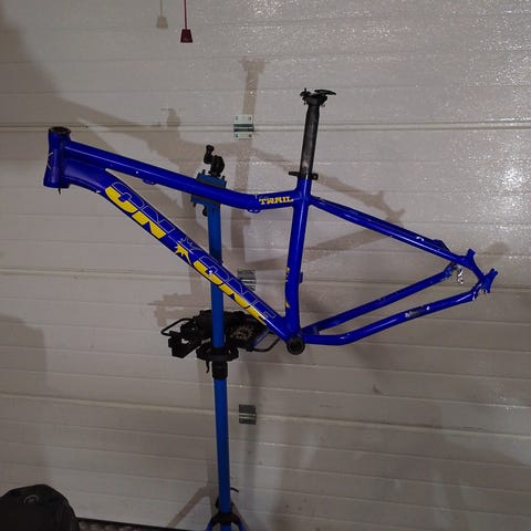 Dub keskiölle. Kampien pituus 165 mm. Ollut pyörässä jossa on 170 mm. leveä perä , 4" renkaat ja 100 mm. keskiö. 30-hampainen ratas on melko kulunut. Vasemman puoleisen kammen poljin ei lähde irti, eli on jumissa, mutta muuten toimii hyvin. Polkimet tulee mukaan