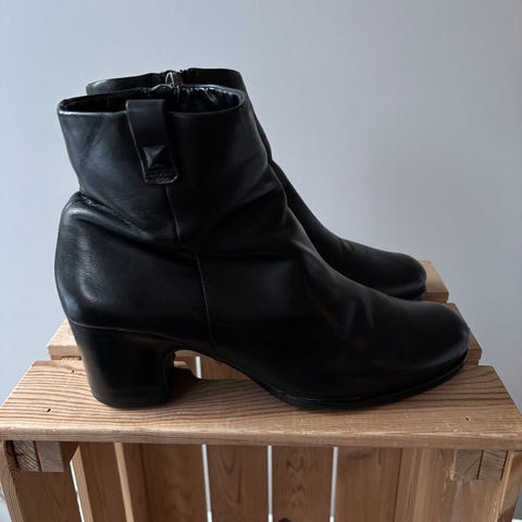 Eccon harmaat nilkkurit, päällinen nahkaa. Käytönjälkiä varmasti löytyy, mutta mielestäni hyvä käytetty kunto.