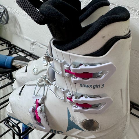 Hyväkuntoiset lasten laskettelumonot. Merkki Atomic Hawx girl 2. Koko 19-19,5 eli vastaa kokoa 31-32.