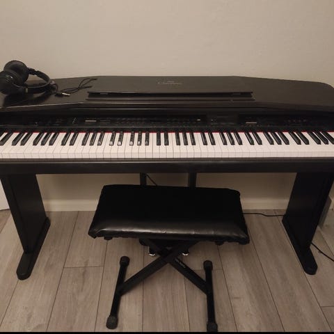 Yamaha Clavinova digitaalipiano musta. Sisältää pianon ja penkin. Meillä olleet vähäisellä käytöllä, toimivat.