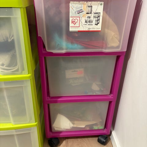 Lokerikko 3 muovilaatikkoa.