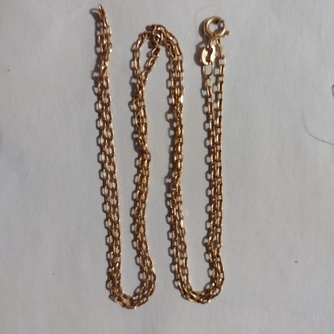 Ankkurikaulaketju, umpikultaa 585 l. 14 karaatia, Pituus 58 cm Lenkin leveys 11,6mm, Painoa 258g Tekijäleima JY vuodelta 2008 Aitoustodistus. Asialliset tarjoukset huomioidaan. Ketju on säilytyksessä pankin tallelokerossa, joten ei nähtävissä muuten kuin oheisissa kuvissa. Toimitetaan vakuutettuna lähetyksenä.