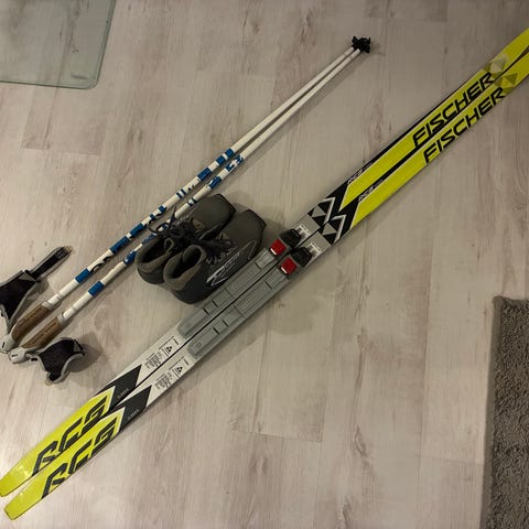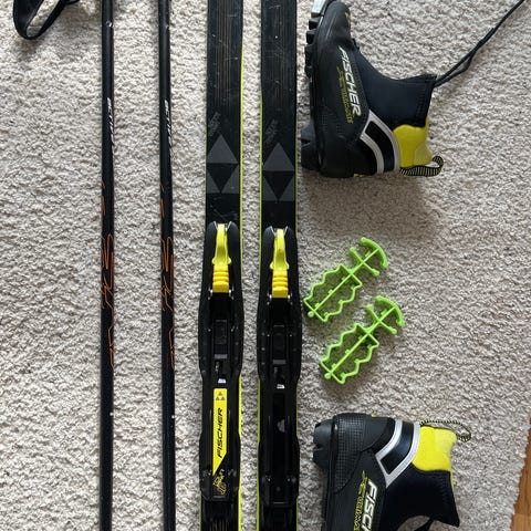 Myydään murtomaahiihtopaketti. Sukset 160cm Tecnopro, siteet, Salomon monot 37 1/3 koko. Sauvat Rex 110cm. Nouto tai postitus