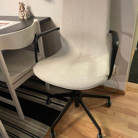 Ikean Långfjäll-työtuoli, selkäosa on korkeampaa mallia. Siistissä kunnossa. Mukaan saa myös käsinojat jos haluaa, mutta niitä ei ole asennettuna.