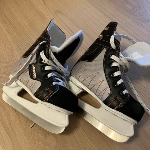 Jääkiekko luistimet lasten koko 26. Musta väri ja valkoinen teräosa. Soveltuvat jääkiekkoon.