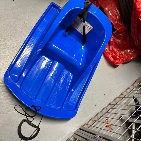 Vuosi sitten uutena ostettu tummansininen vauvapulkka. Käytetty muutaman kerran, laitan kuvat huomenna.