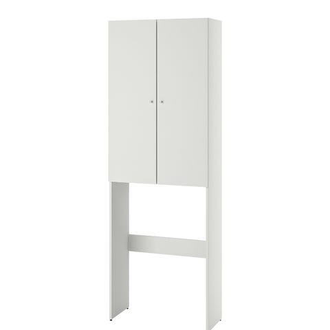 Mukana pyykkikorit 2 kpl ja yläosassa kätevä hylly esimerkiksi pesuaineille tai muulle vaatehuollon tavaroille.