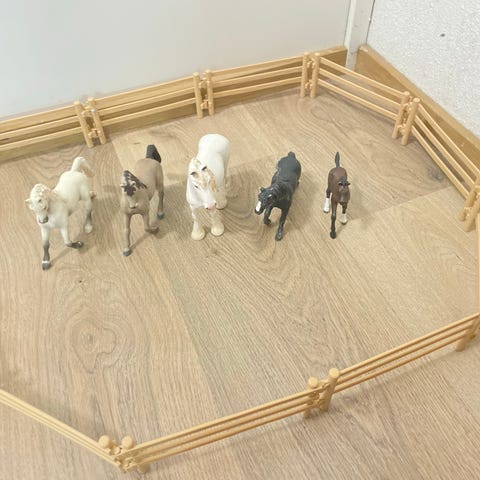 Hyväkuntoinen Schleich setti. Ei kulumia. Sisältää hevosvaunut, hevosen, viltin, eväskorin, kuppikakun, kypärän ja hahmon.