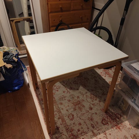 Myydään kuvassa oleva Maskun pöytä! Kuten näkyy, pöydän yksi kulmista vaurioitunut kolahduksen myötä. Pienellä tuunauksella tai pöytäliinalla pöydästä saa täysin käyttökelpoisen☺️Nopea haku! Mitat 120x70x75
