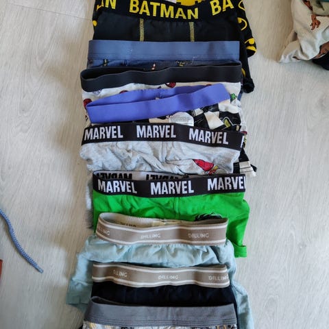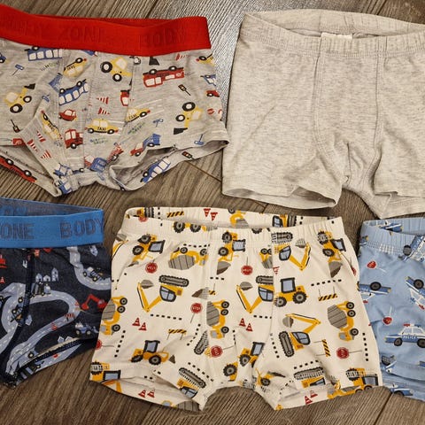 3kpl poikien F&F merkkiset (ulkomailla Tescosta ostetut) alushousut. Kokomerkintä on 2-3vuotta, taitaa olla noin 86-92 kokoa, ehkä lähempänä kokoa 86. Kaikki kolme käyttöönottopesty, yksi niistä käytetty kerran ja todettu liian pieneksi eli koko setti nyt eteenpäin. 95% puuvillaa ja 5% elastaania. Sopii hoikalle pojalle.