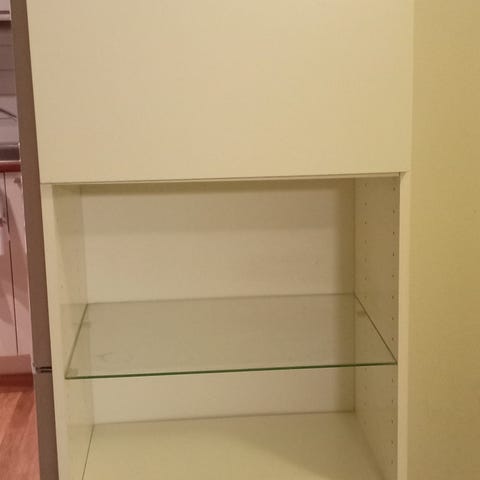 Hyllykkö, pyökin värinen, kahdella laatikolla, korkeus 173, leveys 49-50, syvyys 35-35,5 cm, 15€