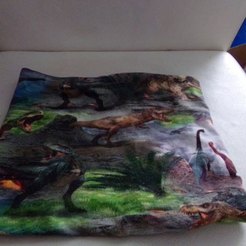 Lapselle sopiva dinosaurus-kauluri. Kaulurissa ei ole "häiritsevää" lappua, koska sillä on kaksipuolinen kuviointi. Materiaali on ilmeisesti polyesteriä tai sekakuitua. Lämmin eikä kutise.