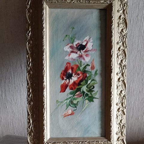 Öljymaalaus kankaalle – kukka-aihe, näyttävä kultakehys
