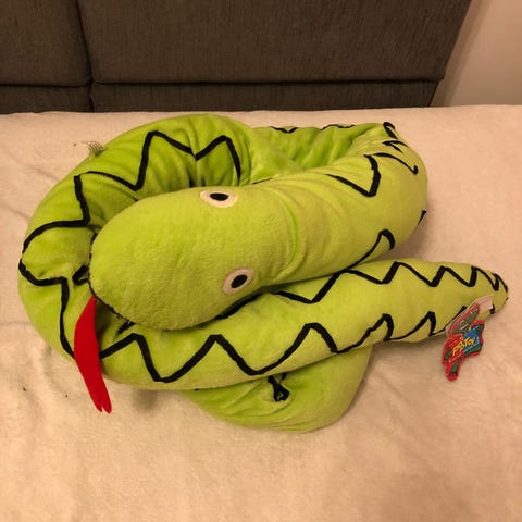 Liikkuva lelukäärme, hiljainen ääni. Kääntyy nivelten kohdalta ja luikertelee hyvää vauhtia.