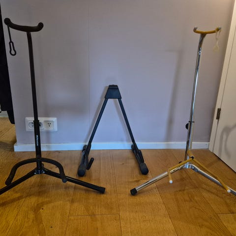 Kitaratarvikkeet kitarateline, säädettävä ja tukeva rakenne. Sopii erikokoisille kitaroille. Musta väri, metallimateriaali.