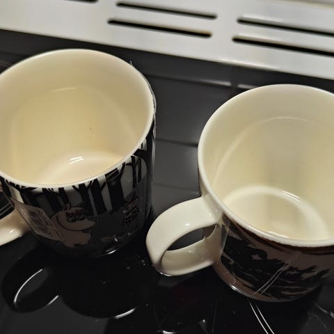 Myydään Arabian Muumi Muutto- sarjaan kuuluvat mukit, säilytyspurkki ja kannu. Ehjiä. Purkin kansi ottanut vain osumaa, se näkyykin kuvassa. Kannu sisältä kalkkeutunut, en ole yrittänyt poistaa. Poistoyritys jäisi ostajalle.😊