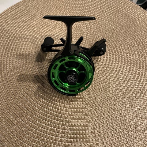 Uusi käyttämätön välityksellinen kela ylimääräisenä! Hyvän ja jämäkän tuntuinen. Kelassa säädettävä jarru ja pudotus painike etu sormelle.