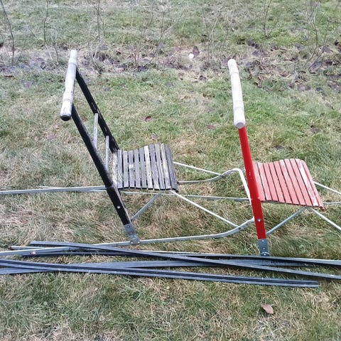 Kaksi vähän käytettyä potkukelkka hankijalaksin