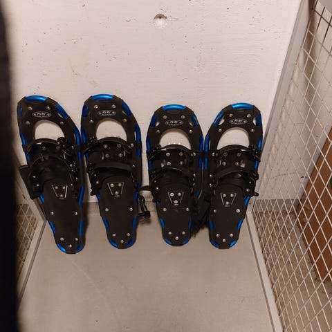 Siitä isälle ja pojalle tai miksei äidille ja tytölle lumikengät. Muutaman kerran ollut testissä, mutta itse enempi suksimiehiä niin jääneet ylimääräseksi.