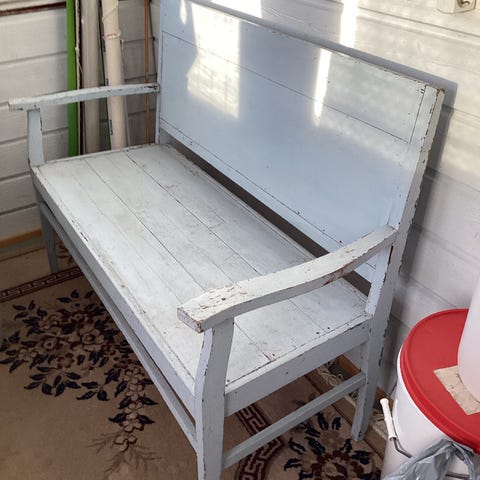 Kevyt, tukeva koivurunkoinen istumapenkki, säilytetty sisälämpötilassa.