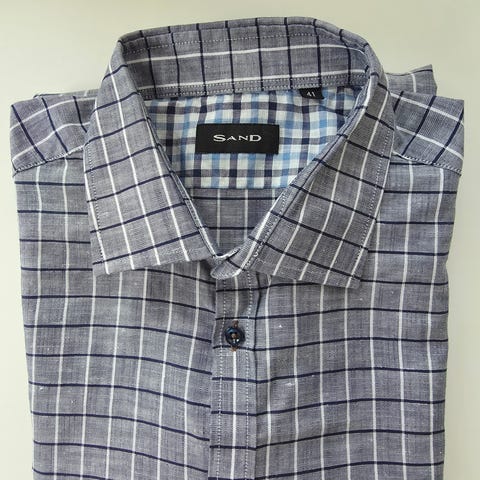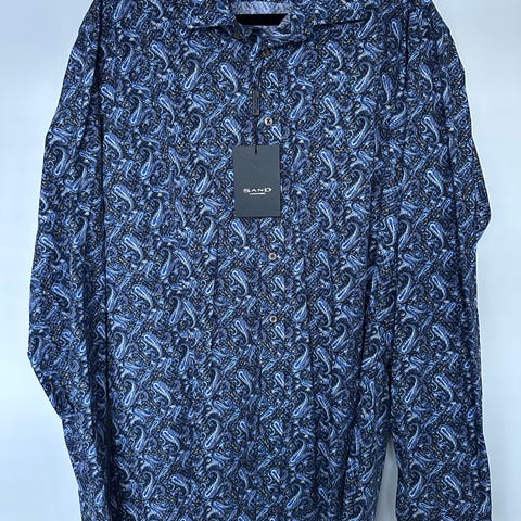 SAND Copenhagen vaaleansininen kuvioitu/pilkullinen kauluspaita, 100% puuvilla. Erittäin siisti.