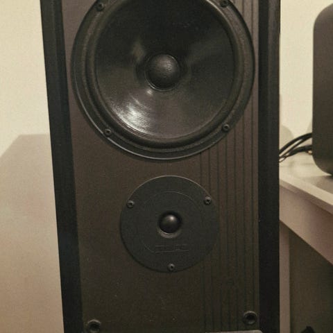 Ei enää ihan priimakunnossa, mutta toimii ja soi hyvin. Mukana saa seinätelineet, jotka kiinni kajareissa.