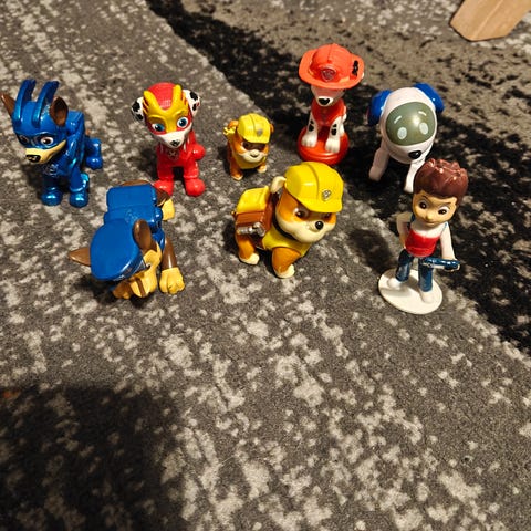 Myydään Vainu ja Halti, isommat lelut. Vainun repusta avautuu työkalut. Haltista kuuluu vähän huonosti Ryhmä Hau tunnusbiisi. Lisäksi Ryhmä Hau Robokoira ajoneuvossa (Paw Patrol Robo Dog Racer).