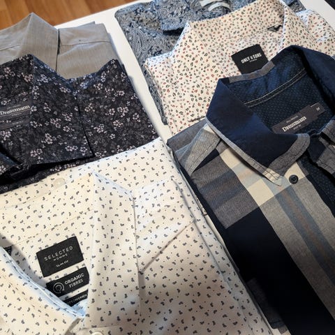 3 kauluspaitaa settinä, kukkakuvioinen Dressmanin ja muut Springfieldin, kokoa M hinta 5e.