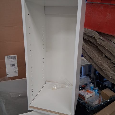 Kaksi tukevaa vaaleata vintageavohyllykköä.