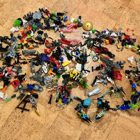 Myydään kassillinen (kuvan kori ei tule mukaan) sekalaisia Lego Bionicle -osia. Ei mitään hajua, mitä tässä on, mutta osta pois ja koe löytämisen ilo! Hinta koko läjälle 20€.