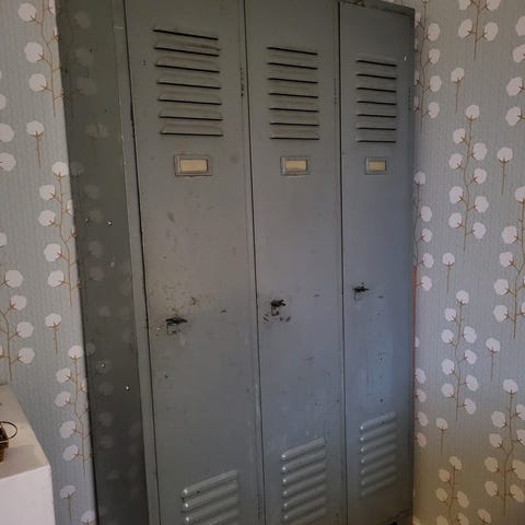 Ostetaan käytetty peltinen pukukaappi hallille. 1 tai 2 ovinen, mahdollisimman kapea jos 2 ovinen. Hattuhylly plussaa.