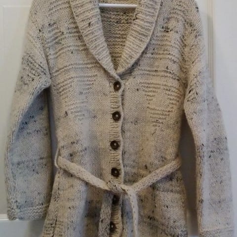 Käsintehty romanttinen neuletakki 100 % villaa.