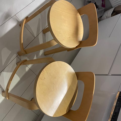 Artekin K65 työtuoli. Tuolit ovat alkuperäisessä kunnossa eli tehtaalla maalattu punainen. Tuolit ovat ok käytetyssä kunnossa. Hinta on kappale hinta.